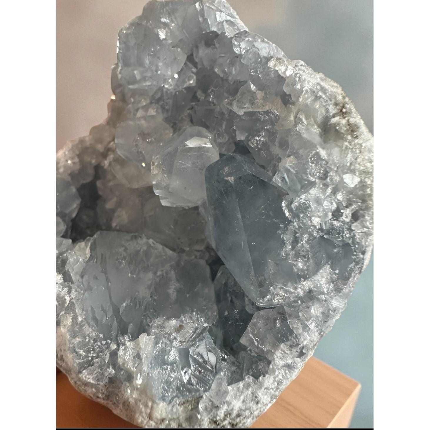 Los entendidos dicen que la Celestina suele usarse para canalizar la energía de los sueños haciéndolos más lúcidos y así comprender sus mensajes con mayor claridad. Se conoce por tener altas vibraciones, especialmente asociadas al chakra de la coronilla y del tercer ojo. Por su color azul suave se le atribuyen propiedades relajantes que ayudan a enfrentar situaciones difíciles con calma y serenidad.