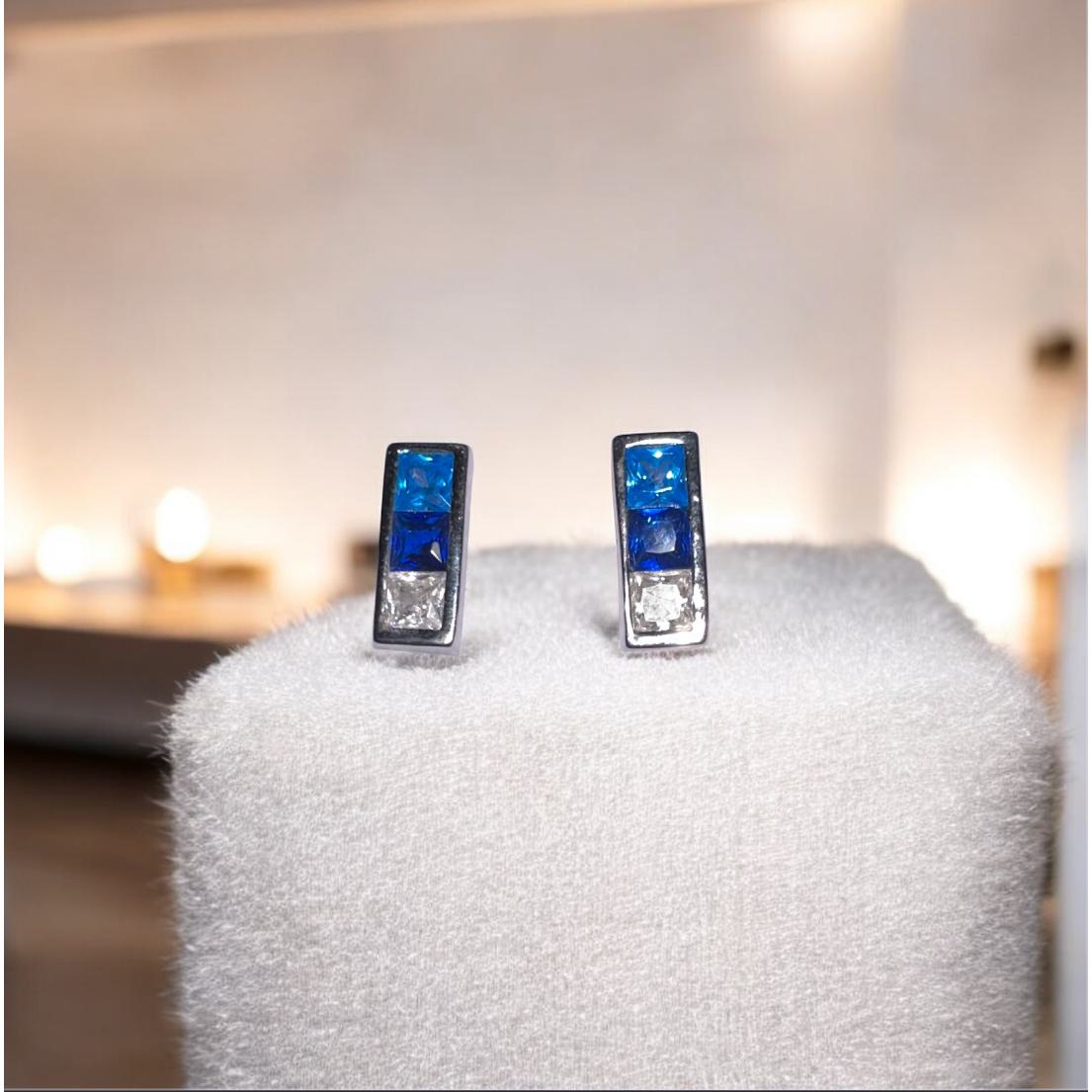 Preciosos pendientes en Plata de Ley con colores azul cielo, azul índigo y cristal transparente.